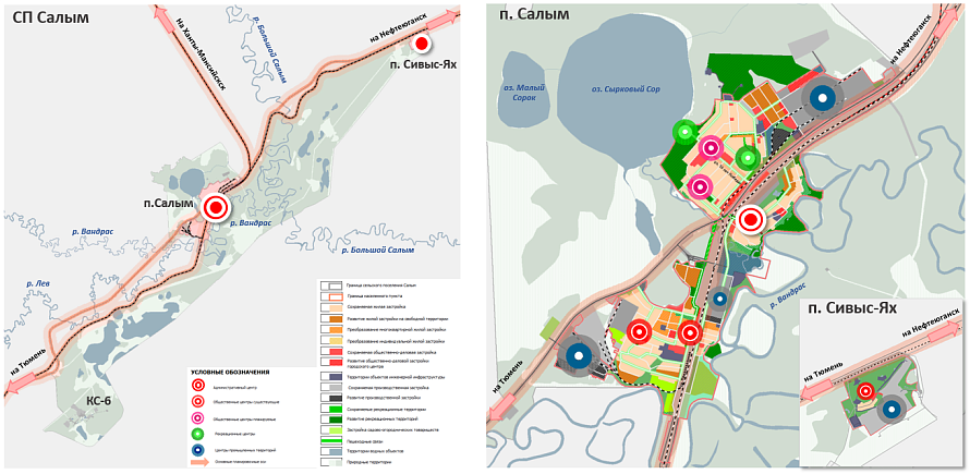 Генеральным планом предусмотрены решения по изменению границ населенных пунктов п. Салым и п. Сивыс-Ях с учетом действующего законодательства, действующего землепользования и планируемого развития поселков.