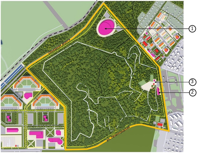 Проектом предусмотрено развитие территории биатлонного центра (рис.7), расположенного вдоль ул. Уральской, где будут размещены: