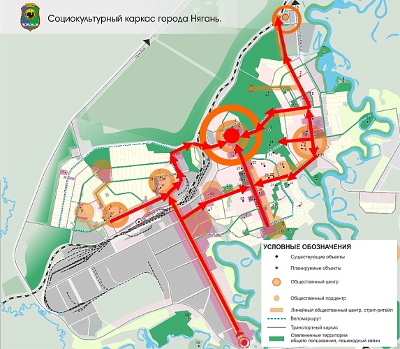 Нягань – открытый, молодой, развивающийся город, расположенный в самом центре тайги, органично вписан в природный ландшафт. Сценарии развития таких территорий определены исходя из их местоположения, функционального назначения в единстве социокультурного, экономического и пространственного содержания города.