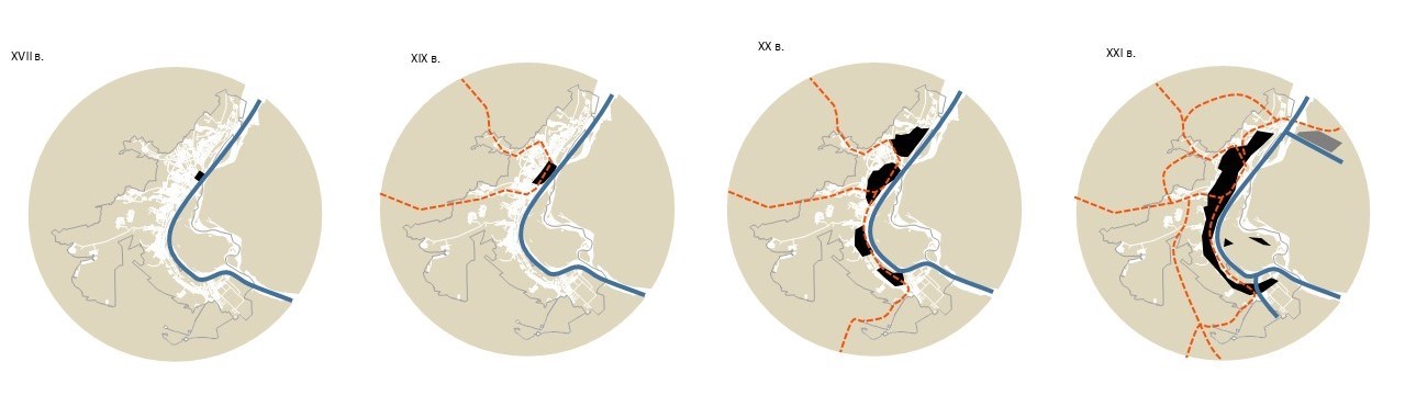 Рисунок 2. Ретроспектива планировочного каркаса г. Волгограда